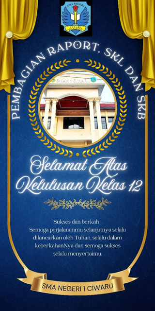 Dalam rangka kegiatan akhir tahun pelajaran 2024/2025, SMA Negeri 1 Ciwaru akan melaksanakan acara pembagian dokumen kelulusan dan temu pisah siswa kelas XII bersama guru-guru. Sehubungan dengan hal tersebut, kami menginformasikan sebagai berikut:
